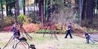 Building the Tee Pees became a communal event as some of the originals collapsed. The reconstructed ones involved several children and new ideas about how to add stability to the structures -- including the idea of tying the three main sticks at the top.